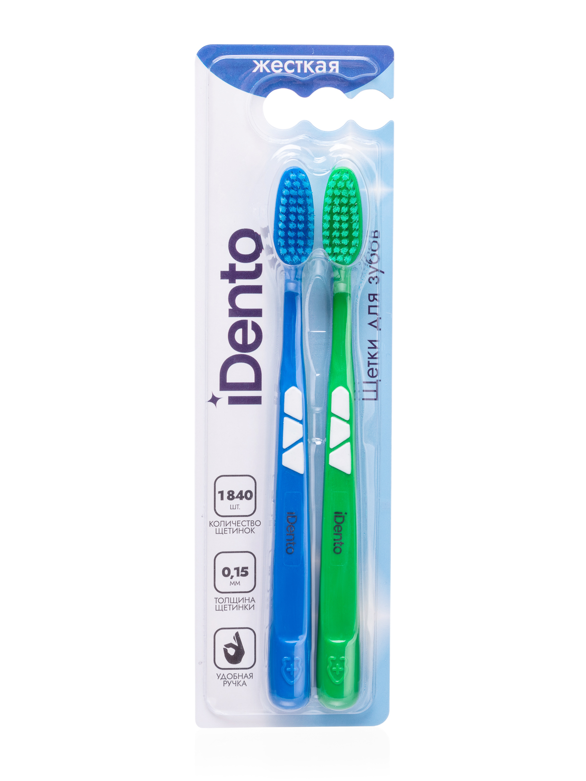 Зубная щетка iDento с жесткой щетиной эффективно очищает зубной налет. Плотные щетинки с заостренными кончиками обеспечивают высокое качество очистки пространства между зубами, а также, при регулярном применении, позволяют уменьшить или, в некоторых случаях, удалить налет от кофе и табака.