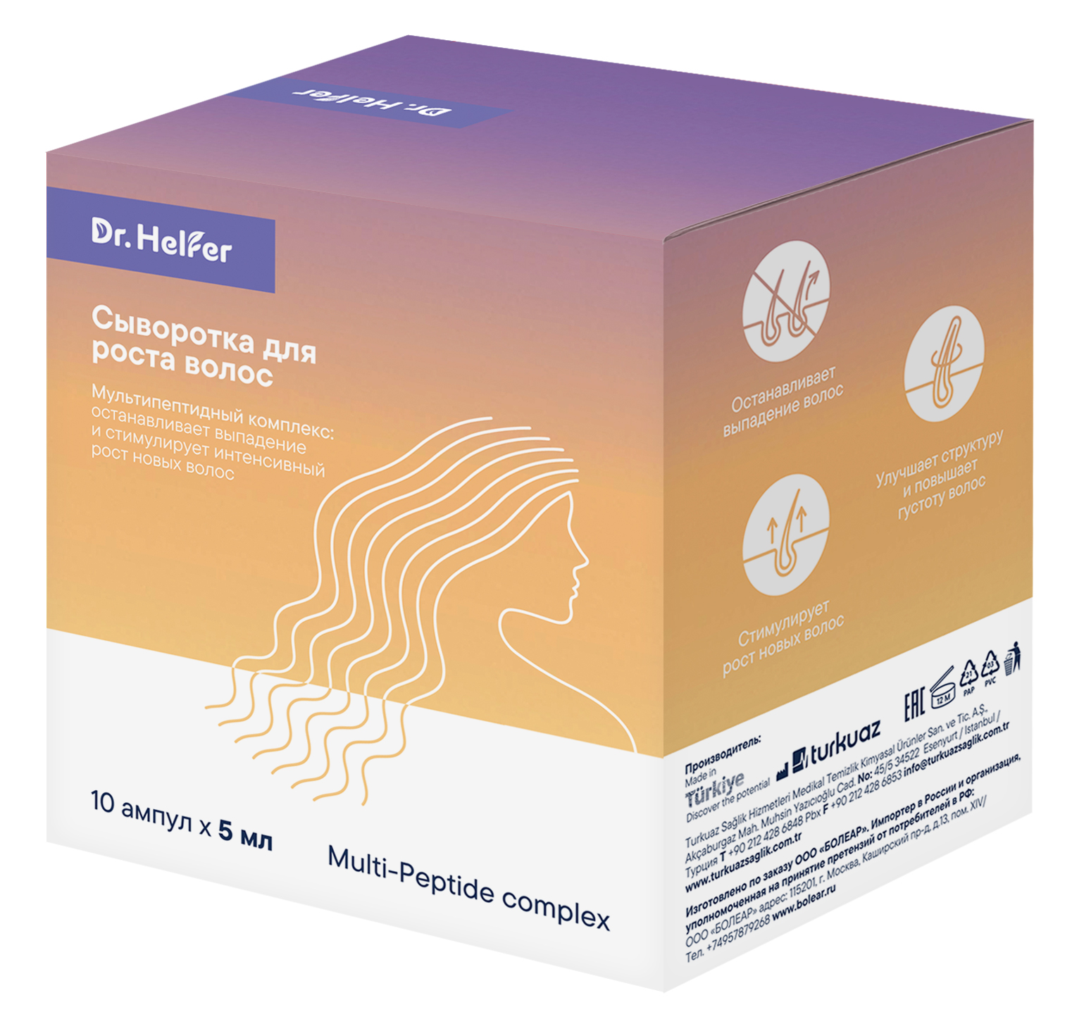 Сыворотка для роста волос останавливает выпадение волос, активизирует волосяные фолликулы, улучшает структуру волос, стимулирует интенсивный рост и повышает густоту волос. Мультипептидный комплекс с усиленной формулой из 15 активных компонентов - это эксклюзивная формула, состоящая из активных и натуральных стимуляторов роста волос с доказанной эффективностью воздействия.